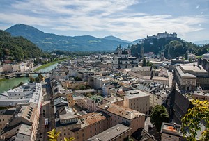 Tal bei Salzburg und die umliegenden Berge. Wir machen erst mal eine