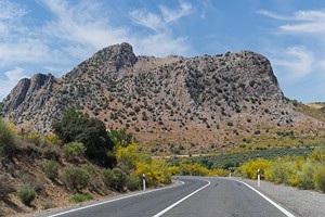 Bergstraße, die runter an die Küste bei Marbella führt. Am Pass Puerto El