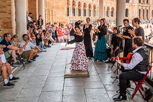 die Flamenco-Show mit Eva Bravo beginnen. Es gibt eine Tänzerin und einen
