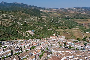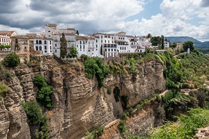 hübsches weißes Dorf hoch über der Küste. Auf dem Weg zur Stierkampfarena