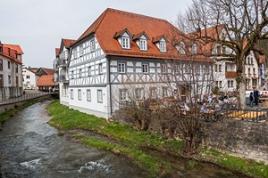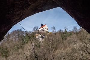 Forchheim Nach dem Frühstücksbüffet im Hotel laufen wir noch mal eine Runde durch die Altstadt von Bamberg. Dann fahren wir zum Wanderparkplatz auf die Ehrenbürg, auch Walberla, genannt in Kirchehrenbach in der Nähe von Forchheim. Um 10.15 Uhr laufen wir los. Nach einer halben Stunde haben wir die Nordkuppe, das 513,9 Meter hohe Walberla mit der Walburgis-Kapelle erreicht, und auch die Sonne kommt für kurze Zeit wieder raus. Es weht allerdings wieder ein sehr kalter Wind. Die Wanderung geht weiter auf die Südkuppe, den 531,7 Meter hohen Rodenstein, und in einem Bogen unterhalb des Berges zurück. Nach insgesamt zwei Stunden, 7 Kilometern und 240 Höhenmetern sind wir wieder am Parkplatz. Dort gegenüber kehren wir im Restaurant Walberla ein und essen Schäuferla und Putenbrust. Mit zwei Getränken zahlen wir 33 Euro. Anschließend schauen wir uns Forchheim an und Ebermannstadt. Wir trinken noch einen Kaffee und fahren zum Parkplatz an der Binghöhle bei Streitberg im Schauertal und laufen von dort zu einem Wasserfall mit Sinterterrassen und zu einem Aussichtspunkt an der Burgruine Streitberg. Dann fahren wir nach Muggendorf im Wiesenttal und beziehen um 16.30 Uhr die Ferienwohnung Balkonia in den Wald & Wiesent Appartments. Die Wohnung mit separater Küche und Schlafzimmer ist sehr schön mit einem riesigen Südwestbalkon.