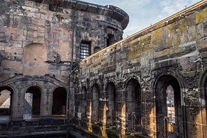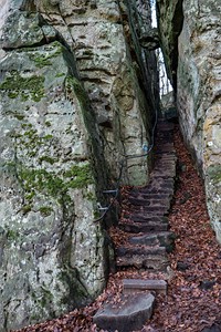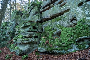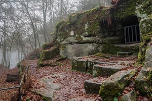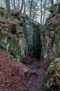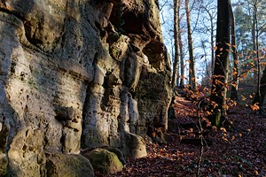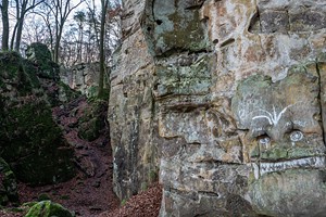 Geschichte, Buntsandsteinfelsen, Höhlen und einer Burgruine. Der