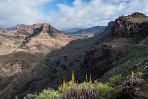 Das Frühstücksbüffet ab 7.30 Uhr ist auch sehr gut. Man kann sich u.a. Omeletts selbst zusammengestellt frisch zubereiten lassen. Es gibt warme und kalte Speisen. Danach packen wir unsere Wandersachen und fahren gegen 9.30 Uhr los. Bei Maspalomas geht es in vielen Kehren direkt in die Berge. Wir halten noch am Mirador Astronómico de la Degollada de las Yeguas mit spektakulärem Blick, und nach einer Stunde parken wir am Aussichtspunkt bei St. Bartolomé de Tirajana. Von dort starten wir unsere Wanderung, denn weiter oben hängen noch die Wolken in den Bergen. Vom Mirador Tunde laufen wir über den Sattel Degollada de Mananzilla zum Mirador Cruz Grande und auf einem alten Königsweg wieder bergab, insgesamt 13,8 Kilometer mit 410 Höhenmetern. Die Runde ist sehr schön mit tollen Ausblicken. Am Cruz Grande befinden wir uns auf 1250 Metern über dem Meeresspiegel. Uns kommen nur sehr wenige Wanderer und eine Gruppe Mountainbikefahrer entgegen. Nach 4,5 Stunden sind wir kurz vor 15 Uhr wieder am Parkplatz.