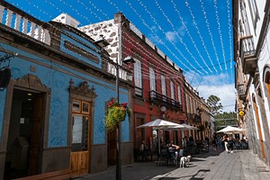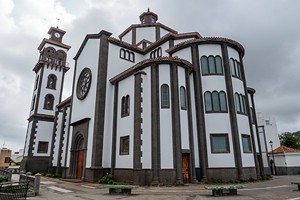 Danach fahren wir nach Arucas, wo wir kostenlos auf einem großen Parkplatz neben der Kirche parken können. Von dort laufen wir bis zum Parque de Las Flores und kehren noch in einem Café ein. Die zwischen 1909 und 1977 im neugotischen Stil erbaute, einer Kathedrale ähnelnden Kirche Parroquia de San Juan Bautista de Arucas hat ab dem Mittag bis zum späteren Nachmittag leider geschlossen, und auch die Zufahrt zum Aussichtsberg über der Stadt ist gesperrt. Wir fahren noch nach Teror ein Stück weiter in die Berge. Um 15 Uhr sind wir dort, auch hier gibt es einen großen kostenlosen Parkplatz. Der historische Ortskern mit den vielen balkongeschmückten Häusern ist sehr hübsch. Leider ist die Wallfahrts-Basilika noch bis 16 Uhr geschlossen, so dass wir noch eine Weile warten müssen, bis wir reinkönnen. 40 Minuten dauert die Rückfahrt ins Hotel, gegen 17 Uhr sind wir dort. Auch hier scheint noch die Sonne.