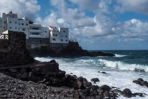 Das 4-Sterne-Hotel Roca Negra mit 87 Zimmern hat einen schönen Meerblick vom Zimmer. Das Wasser im Pool war zeitweise zu kalt, dann wieder sehr angenehm temperiert. Die Büffetauswahl war OK, aber um einiges schwächer im Vergleich zum Don Gregory. Der Restaurantbereich hat keinen Meerblick. Kaffee auf dem Zimmer konnte man sich mit heißem Wasser und Nescafé machen, es wurde nicht jedes Mal nachgefüllt. Meeresrauschen hört man nicht auf dem Zimmer, aber wenn jemand nachts ins Bad geht, wird auch das Zimmer durch die Glasscheibe beleuchtet. Die Betten waren sehr bequem. Vom Hotel aus kann man auf einem Promenadenweg am Meer entlang zu Meerwasserpools und zum nahegelegenen Hafenort Puerto de las Nieves laufen. Kostenlose Parkplätze gibt es in der Umgebung. Wenn man im Februar abends Sonne auf dem Balkon haben möchte, sollte man ein Zimmer auf der nördlichen Seite nehmen. Am Wochenende wird an der Rooftop Bar Live-Musik geboten.