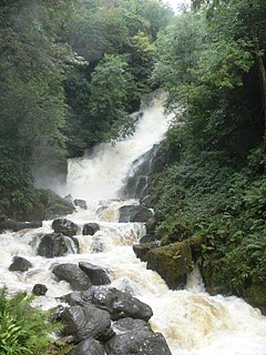 Dann liefen wir den kurzen Weg vom Parkplatz zum Torc Wasserfall, der