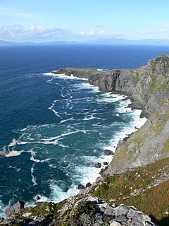 Knightstown, warfen einen Blick auf den Leuchtturm und in The Grotto und fuhren hoch auf den Geokaun Mountain und zu den Fogher Cliffs (4 Euro
