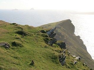 Valentia Island, auf dem man im Morgenlicht die Skellig-Islands schön