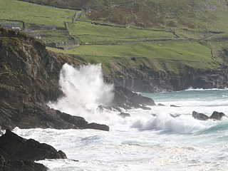 Aussicht vom Slea Head mit gelegentlich Sonne und faszinierenden Wellen