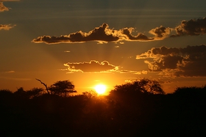 Schakale. Zurück im Camp gingen wir zum Sonnenuntergang um 17.45 Uhr zum