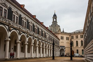 Dresden, aber es ist wolkenverhangen. Wir flüchten vor dem Regen in