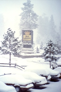 When we woke up the morning afterwards and looked out of the window we couldn't believe our eyes: the snow outside was half a meter high and it was impossible to see farther than about 100 meters! Our intention was to spend the entire day at the Grand Canyon, but considering the weather conditions there was no point in delaying as there was no sign that it would clear up very soon. So we gave up our original plan and decided to continue on our way towards Flagstaff. This meant no Grand Canyon for me! My aunt, uncle and cousin had already seen it on another trip. After leaving the national park the weather slowly improved on our way south to Wupatki/Sunset Crater National Monument. But even the lava formations in this area were covered by snow. At Montezuma Castle we finally got away from the snow. However, the strap of my camera snapped and it smashed several feet down onto the concrete! There didn't seem to be any immediate damage but it wasn't working anymore and this already at the beginning of our trip! But surprise, surprise, later at the motel (Cliff Castle Lodge) - in hope of a small wonder - I was trying it out once again, not able to believe my bad luck, and suddenly it was working again!! Well, I did have to get it repaired later, but during the rest of the trip it still did its job!