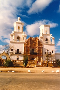The following day we went to Tombstone, a quite original western town, site of the O.K. Corral Shoot-out with Wyatt Earp (the Tombstone Boothill Graveyard was interesting; with someone hanged by mistake) and to Nogales. Here we crossed the border to Mexico for about an hour. We had to leave the car on the US-American side as the rental company didn't allow to take it across the border due to insurance reasons. In spite of Nogales being a border town and therefore probably not typically Mexican it was interesting to get to see a bit of Mexico. The fortifications at the border, big fences to prevent people from entering the United States illegally were quite impressive. After our return we visited San Xavier Mission as well as Saguaro National Monument (west) where many of these cacti can be found. Once more we spent the night in Tucson.
