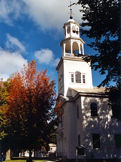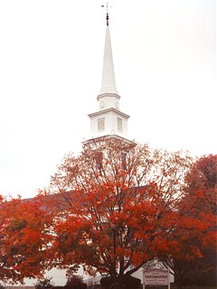 Street befinden sich eine schöne weiße Kirche, wie sie für Neuengland