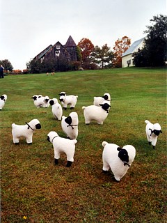 andere Tiere aus Plüsch auf der Weide standen. Skurril! Wir hielten