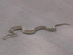 Straße mal wieder auf eine Schlange! Es könnte eine Gopher Snake bzw. Bull Snake