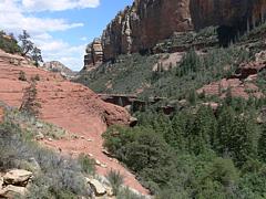 flott voran. Man quert oder durchläuft einen großen Wash, bevor es zur Brücke