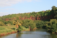 Hier muss man nachher wieder hoch! Dann überquert man auf großen Steinen einen Bach, bevor es über einen lehmigen