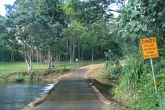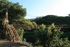 dann wieder rechts in die Menehune Road bis zur Hängebrücke am Menehune Ditch.