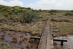 dann durch ein Sumpfgebiet. Sobald man die Holzstege hier erreicht hat, geht es