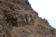einem ausgewaschenen Lehmpfad, dann wieder bergauf immer am Canyonrand entlang,