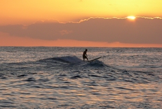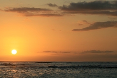 Boarden konnte man rechts den Sonnenaufgang hinter den Bergen über Honolulu