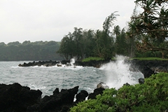 can be heavy later in the day. The Hana Road winds along the east coast of Maui in