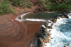 we continued to Hana and took a short trail that leads to a red sand beach. After a short