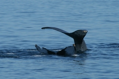 calm. We saw lots of different whale behaviours: blow, peduncle arch, fluke up dive