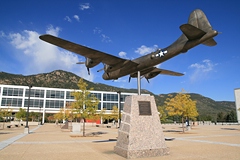 in the morning with its beautiful Cadet Chapel and a model of a B52
