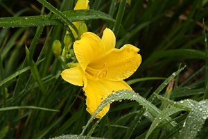 Regen, der die Berge hinaufzieht. Wir stellen uns unter die Bäume und