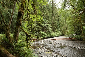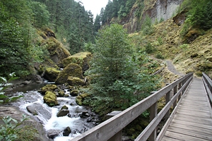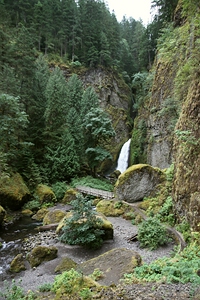 die Oneonta Gorge hinunter. Man kommt an den Oneonta Falls vorbei, und
