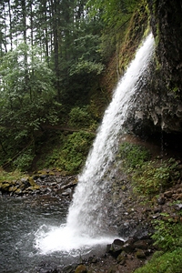 Upper Horsetail Falls) weiterläuft. Der Trail führt in der Basaltwand