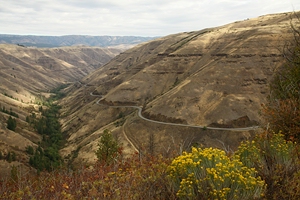 An diesem Morgen holten wir uns beim Longhorn Espresso Shack einen Kaffee und Croissants und Brötchen beim Safeway. Heute stand eine längere Autofahrt an. Gegen 8 Uhr machten wir uns auf den Weg. Wir hatten uns spontan entschieden, eine andere Route als die ursprünglich geplante Strecke auf der I-84 nach Hood River (an der Columbia River Gorge) zu fahren, ohne besonderes Tagesprogramm, womit wir den Loop in Oregon geschlossen hätten. Auf dem Highway 3 ging es stattdessen von Enterprise Richtung Norden nach Clarkston/Lewiston. Wir hielten kurz am Joseph Canyon Viewpoint, dann ging es runter zum Grand Ronde River, dabei querten wir wieder die Grenze von Oregon nach Washington.