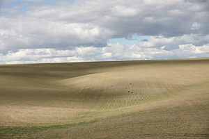 Auf der Weiterfahrt auf der I-84 nach Norden querten wir den 45. Breitengrad (der die halbe Strecke zwischen Nordpol und Äquator bezeichnet), und es regnete heftig. Aber wir saßen ja trocken im Auto und wollten jetzt nur Meilen machen. Einige Meilen nördlich von La Grande hätte mich noch das Oregon Trail Interpretive Center von Blue Mountain Crossing interessiert, wo die Wagenspuren besser erhalten sein sollen, aber wir bogen schon vorher auf den Highway 82, den Hells Canyon Oregon Scenic Byway, Richtung Wallowa Valley ab.