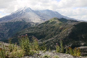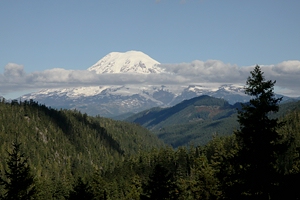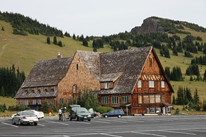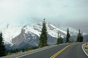 Abreisetag! Das Wetter sah heute schon wieder besser aus. Da stand dann noch die Sunrise Area des Mount Rainiers auf dem Programm. Gegen 9 Uhr fuhren wir los. Auf dem Highway 123 ging es nach Norden und über den White River Entrance wieder in den Nationalpark. In Kehren ging es auf der Nordostseite den Berg hinauf, und auch wenn die Spitze weiterhin in den Wolken lag, so hatte man doch Blick auf die unteren Hänge der Gletscher, und auch den Mount Adams konnte man in der Ferne sehen. Gegen 10 Uhr erreichten wir den Parkplatz am Sunrise Visitor Center. Hier vertraten wir uns noch für etwa eine halbe Stunde die Beine.