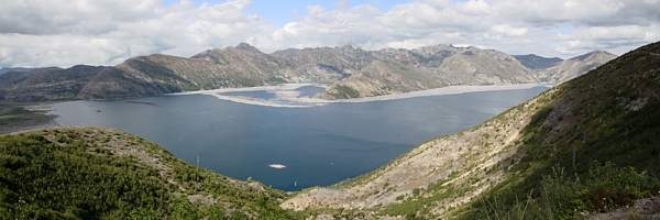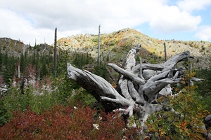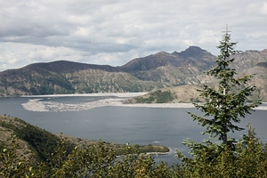 Wir fuhren noch mal nach Packwood rein, um uns in einem Coffee House einen Kaffee zu besorgen. Gegen 11 Uhr brachen wir dann auf zum Mount St. Helens. Wir nahmen den Highway 25 und 99. Es geht zunächst durch den Wald, vom Berg ist noch nichts zu sehen, aber schließlich kommen mehrere Viewpoints mit Blick auf den Vulkan, der durch seinen Ausbruch 1980 Berühmtheit erlangt hat, und den Spirit Lake. Hier gilt auch wieder unser NP Pass, oder man braucht einen National Forest Pass für $5. Einmal sehen wir noch den Mount Rainier in der Ferne halb in den Wolken. Der nahe Mount Adams versteckt sich. Beeindruckend sind die ganzen abgestorbenen und umgefallenen Bäume in der sogenannten Blast Zone. Auch auf dem Spirit Lake treiben noch viele weiße Baumstämme. Wir halten am Miner‘s Car und laufen den kurzen Trail zum Meta Lake. Hier ist eine tolle Vegetation.