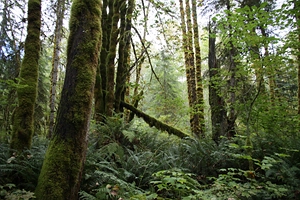 Gegen 13 Uhr machen wir Lunch an den Picknicktischen am Smith Creek Viewpoint, kurz vor dem Ende der Straße an der Windy Ridge. Es ist ziemlich kühl hier oben. An der Windy Ridge sehen wir einige Wapitis in der Ferne am Hang, und wir steigen die vielen Treppen zum oberen Aussichtspunkt hoch. Von hier hat man wirklich einen tollen Blick auf den Krater des Mount St. Helens (alternativ kann man den Park auch von der Westseite anfahren, es gibt aber keine direkte Verbindung zur Ostseite, an der wir uns befinden). In einem Loop fahren wir über den Highway 26 zurück Richtung Packwood. Dies ist eine einspurige Straße mit einigen Schlaglöchern. Auf der Hinfahrt war sie nicht ausgeschildert. Um 15 Uhr sind wir wieder auf dem Highway 25. Da es noch früh ist, laufen wir noch den Woods Creek Loop und Old Growth Loop von 2,5 Meilen durch den bemoosten Wald. Wir sehen ein paar kleine Frösche und Banana Slugs, leider keinen Biber, die es auch hier geben soll. Insgesamt brauchen wir eine knappe Stunde. Gegen 16.45 Uhr sind wir wieder am Motel.