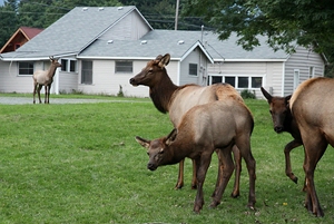 Zum Abendessen gibt es in Packwood wenig Alternativen: Cruiser’s Pizza, Peter’s Inn und den Blue Spruce Saloon. Wir entscheiden uns für Cruiser’s. Leider nehmen wir nicht die Pizza, die wohl ganz OK sein soll, sondern Burger und Fish & Chips. Der Laden ist ungemütlich, man muss an der Theke bestellen, und das Essen war nicht so besonders. Mit einem Bier und einer Cola zahlen wir dafür immerhin noch $29. Für das gleiche Geld haben wir schon oft sehr viel besser gegessen. Auf der Rückfahrt ins Motel sehen wir noch ein paar Wapitis durch den Ort laufen.