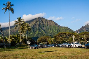 Parkplatz am Trailhead zu den Manoa Falls. Die Parkplatzgebühr beträgt $5.