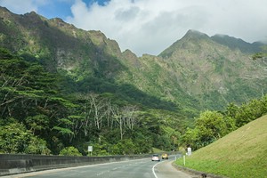 Pali Highway nach Honolulu. Der morgendliche Stau ist um diese Zeit