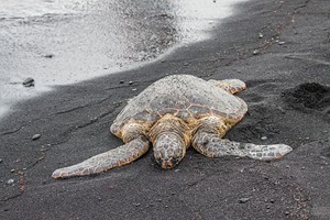 Punalu‘u Black Sand Beach. Hier hatten wir auch auf unserer ersten
