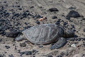 Hawaii-Reise 2008 grüne Meeresschildkröten am Strand gesehen. Und
