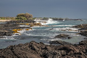 Lavafelsen an der Küste gibt es nicht viel zu sehen. Hier ist es heiß bei