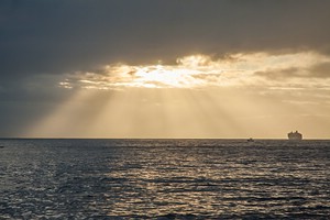Sonne nicht so recht hinter den Wolken. Um 19 Uhr sind wir abfahrtbereit
