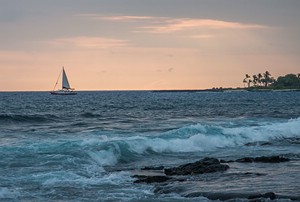 30 °C, und es ist ziemlich windig. Als nächstes fahren wir zum Mahukona