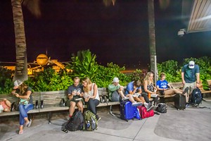 geben unsere Taschen bei Delta ab und gehen durch die Security. Ich kann