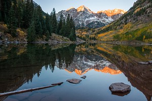 Montag, 25.9. Fahrt zu den Maroon Bells und Wanderung zum Crater Lake und Buckskin Pass Wetter: sonnig, tagsüber 9 °C an den Maroon Bells, 18 °C in Glenwood Springs Dank des Jetlags fällt das frühe Aufstehen um 4.20 Uhr heute nicht so schwer. Wir machen uns auf dem Zimmer einen Kaffee, und um 5 Uhr fahren wir los Richtung Aspen. Kurz vor dem Ort biegen wir Richtung Maroon Bells ab. Nach einer Stunde Fahrt stehen wir vor der Self-Registration und zahlen $10 Tagesgebühr. Ansonsten gilt auch der Nationalparkpass (den wir jedoch diesmal nicht haben). Um kurz nach 6 Uhr bekommen wir einen der letzten Parkplätze am Straßenrand zugewiesen. Wir haben ca. -3°C. Langsam fängt es jetzt auch schon an hell zu werden. Wir ziehen Mütze und Handschuhe an, schnappen uns das Stativ, essen im Gehen noch ein Scone und laufen zwei Minuten zum Ufer des Maroon Lakes. Dort wimmelt es bereits von Fotografen. Ich klettere auf der linken Seite auf ein paar Baumstämme, wo noch eine Lücke ist. Zum Sonnenaufgang um 7 Uhr beginnen die Bergspitzen zu leuchten. Das war ein magischer Moment, vor allem als auch die Spiegelung im Wasser zu glühen beginnt! Dann werden die Berge immer heller. Die ersten Fotografen verlassen nun auch schon bald die Location und der Parkplatz beginnt sich wieder zu leeren. Wir gehen auch noch mal zum Auto, bringen das Stativ weg und packen unseren Proviant ein. Um 7.30 Uhr starten wir dann unsere Wanderung. Am See entlang geht es stetig bergauf durch einen Wald mit gelb leuchtenden Espen bis zum Crater Lake, der wunderschön von hohen Bergen umrahmt gelegen ist, und auf dem See spiegelt sich noch der gegenüberliegende Gipfel! Bis hierher und zurück ist die Wanderung mit 3,6 Meilen angegeben. Wir haben dafür 1 Stunde und 15 Minuten gebraucht. Aber wir wollen noch weiter bis zum Buckskin Pass auf 12.462 Fuß (3800 Metern). Die Strecke ist mit insgesamt 9,2 Meilen hin und zurück ab dem Maroon Lake angegeben. Dabei soll man eine Höhendifferenz von 2882 Fuß (878 Metern) überwinden. Vom Crater Lake aus führt der Weg steiler nach oben. Das Herz rast, und bald benötigen wir alle paar Meter eine Pause! Der Rucksack scheint wie Blei. Da merkt man die Höhenlage. Viel Zeit für die Akklimatisierung hatten wir ja auch noch nicht. Der Weg verläuft viel durch den Wald mit wenig freien Blicken auf die umliegenden Berge. Einschließlich zwei etwas längerer Pausen von jeweils 15 Minuten erreichen wir gegen 11 Uhr eine Stelle mit tollem Panoramablick auf die Maroon Bells und die benachbarten Berggipfel. Wir sind jetzt aber bald an unsere Grenze gekommen und laut GPS sollen es noch 2,2 Kilometer d.h. wahrscheinlich eine weitere Stunde bei unserer jetzigen Geschwindigkeit bis zum Buckskin Pass sein. Da beschließen wir abzubrechen. Bergab ist das Laufen dann überhaupt kein Problem mehr, und es geht viel schneller, aber der Rückweg zieht sich dann doch. Um 12 Uhr sind wir wieder am Crater Lake. Die Berge sind jetzt komplett ausgeleuchtet, und die Spiegelung im See ist verschwunden. Auf der Strecke von hier bis zum Maroon Lake zurück sind mittlerweile auch Menschenmassen unterwegs, während wir auf dem Weg zum Buckskin Pass nur wenigen Leuten begegnet sind. Wir machen noch 20 Minuten Pause am Crater Lake und sind nach einer weiteren Stunde um 13.30 Uhr zurück am Maroon Lake, der jetzt schön im Licht liegt. Hier haben wir mittlerweile 9 °C. Volker und ich bekommen jetzt beide Kopfschmerzen – wahrscheinlich die Nachwirkungen von der Höhe. Auf dem direkten Weg geht es nun zurück nach Glenwood Springs. Kurz nach 15 Uhr sind wir wieder am Hotel. Auf dem letzten Stück stehen wir noch im Stau. Da die Brücke über den Colorado im Stadtzentrum wegen eines Neubaus gesperrt ist, müssen alle, die Richtung Aspen wollen, die Umleitung nehmen, die quasi an unserem Hotel vorbeiführt. Nach der Dusche fahren wir zum Abendessen ins nahegelegene Chili's, wo es für mich das Mango-Chile Chicken mit Reis und Brokkoli und für Volker einen Burger mit Fritten gibt. Zum Nachtisch genehmigen wir uns noch einen Cheesecake. Den haben wir uns heute verdient. Zusammen mit zwei Softdrinks zahlen wir $35 zuzüglich Trinkgeld. Gefahrene Meilen: 105 Übernachtung: Quality Inn & Suites On the River, Glenwood Springs ($84 + Tax)