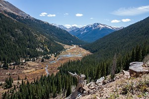 Dienstag, 26.9. Fahrt nach Leadville und über den Independence Pass nach Aspen Wetter: sonnig, 10 °C in Twin Lakes, 18 °C in Glenwood Springs Ab 6 Uhr gibt es Frühstück im Hotel, und für ein amerikanisches Hotelfrühstück ist es gar nicht mal übel. Es gibt Omeletts, Hashbrowns, kleine Fleischpatties, Waffeln zum Selberbacken, Toast, süße Teilchen, Obst, Joghurt usw. Wir nehmen uns Käseomeletts mit Hashbrowns und essen dazu Toast und Joghurt. Um 8 Uhr machen wir uns schließlich auf den Weg zurück auf der I-70 Richtung Osten. Nach einer Stunde Fahrt geht es vor Vail auf den Top of the Rockies Scenic Byway nach Leadville. Die Straße führt entlang des Arkansas Rivers und über den Tennessee Pass ins 3200 Meter hoch gelegene Leadville, eine alte Minenstadt, in der noch viele historische Gebäude zu sehen sind. Inklusive einiger Fotostops sind wir um 10.15 Uhr dort. Im Safeway lassen wir uns ein großes Roastbeefsandwich zum Teilen machen, dann laufen wir ein wenig durch die Stadt und nehmen uns einen Kaffee mit. Um 11 Uhr geht es weiter. Bei Twin Lakes biegt der Scenig Byway Richtung Aspen ab. Wir sehen einen Fischadler, der einen großen, zappelnden Fisch zwischen den Krallen hält. Dann halten wir am Aussichtspunkt über den Seen und machen am Twin Lakes Historical District, wo noch ein paar alte Gebäude stehen, ein Picknick. Hier haben wir 10 °C, aber in der Sonne ist es angenehm warm. Kurz vor 13 Uhr erreichen wir die höchste Stelle auf dem Independence Pass. Hier oben auf 12095 Fuß (3687 Metern) befindet sich die Kontinentalscheide, und man merkt beim Bergauflaufen wieder die Höhe. Es geht ein kurzes Stück zu einer kleinen Aussichtsplattform mit Blicken auf mehrere 14.000er einschließlich des Mount Elberts, des höchsten Gipfels in Colorado. Bald darauf erreichen wir die Grottos Day Use Area und starten um 13.30 Uhr auf dem Grottos Trail zu einer Eishöhle und einem Wasserfall am Roaring Fork River. Nach 30 Minuten auf dem Rundweg sind wir wieder am Auto. Um 14.10 Uhr sind wir am Trailhead zum Weller Lake eine Meile weiter westlich. Für den einen Kilometer bergauf brauchen wir knapp 20 Minuten. Der Blick auf den See umrahmt von hohen Bergen ist toll. Am Vormittag wären allerdings die Lichtverhältnisse besser. Für den Rückweg bergab brauchen wir 10 Minuten. Gegen 15 Uhr geht es weiter. Die Passstraße verengt sich nun abschnittsweise, aber bald erreichen wir den Skiort Aspen. Am Kreisverkehr, wo auch die Straße zu den Maroon Bells abgeht, nehmen wir diesmal die Straße nach Ashcroft. 10 Meilen sind es noch bis zu der Ghost Town. $5 Eintritt sollen fällig werden, aber das Welcome Center ist geschlossen. Trotzdem kann man über das Gelände laufen. Die alten Gebäude liegen zwischen gelben Espen, was sehr schön aussieht. 20 Minuten später fahren wir noch bis zum Ende der Straße, wo wir mit einem tollen Blick auf hohe Berge mit gelben Espen im Vordergrund belohnt werden. Hier sind gerade viele Fotografen unterwegs, die mit geschultertem Stativ noch die Dirt Road am Ende der Teerstraße weiterlaufen. (Was gibt’s dort wohl zu fotografieren??) Einige Allradfahrzeuge fahren die Strecke einfach. Wir machen uns jedoch auf die Rückfahrt und sehen noch ein paar Rehe entlang der Straße. Nach einer Stunde Fahrt erreichen wir kurz nach 17.30 Uhr wieder Glenwood Springs und stehen wieder im Stau. Es sind 18 °C. Zum Abendessen gehen wir in das Glenwood Canyon Brewpub direkt an der Brücke im Zentrum und essen Pork Ribs mit Fries bzw. Shredded Beef Tacos mit Reis. Weil wir noch fahren müssen, verzichten wir auf Alkohol. Zusammen mit einem Tonic Water und einem Iced Tea zahlen wir $40 plus Tip. Um 19 Uhr sind wir wieder am Hotel. Gefahrene Meilen (laut Tacho): 223 (laut Google Maps müssten es eigentlich ca. 348 sein, komisch…) Übernachtung: Quality Inn & Suites On the River, Glenwood Springs ($84 + Tax)