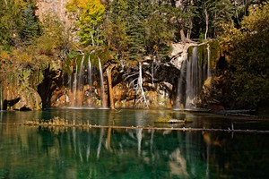 Mittwoch, 27.9. Wanderung zum Hanging Lake und Besuch des Rifle Falls State Parks Wetter: vormittags sonnig mit Schleierwolken, nachmittags teils bewölkt, 19 °C Heute soll es in den Bergen regnen, aber wir haben noch die Wanderung zum Hanging Lake auf dem Programm. Diese Wanderung hatten wir bereits 2008 geplant, aber damals hatten wir unseren Anschlussflug verpasst und waren erst am nächsten Morgen in Denver, so dass die Zeit an dem Tag nicht mehr reichte. Zum Frühstück gibt es heute Hashbrowns mit Rührei. Alternativ könnte man Biscuits mit Gravy oder kleine Würstchen essen. Um 7.30 Uhr fahren wir los. Nach 15 Minuten Fahrt erreichen wir den Exit 125 an der I-70 (von Osten aus muss man den Exit 121 Grizzly Creek nehmen und ein Stück auf der I-70 zurückfahren). Es sind 5 °C. Ein paar Autos stehen schon auf dem Parkplatz. Um 8 Uhr laufen wir los. Der Weg führt steil bergauf an einem Bachlauf entlang in einen Seitencanyon des Glenwood Canyons hinauf. Auf 1,2 Meilen gilt es 320 Höhenmeter zu überwinden. Nach einer Stunde sind wir oben. Der Hanging Lake ist wunderschön. Die Wasserfälle, die sich in einen kleinen See ergießen, liegen noch im Schatten. Wir machen einige Stativaufnahmen und warten dann noch 20 Minuten, bis die Sonne die Wasserfälle gegen 9.50 Uhr komplett ausgeleuchtet hat. Dann laufen wir noch das kurze Stück zum Spouting Rock Wasserfall hoch, der sich aus einem Loch im Felsen ergießt. Um 10.15 Uhr machen wir uns wieder an den Abstieg und sind nach 45 Minuten wieder am Parkplatz. Insgesamt waren wir also 3 Stunden unterwegs, aber mit einer längeren Fotopause am See. Auf dem Rückweg kamen uns viele Leute entgegen, und der Parkplatz unten war fast voll. Hier will man demnächst wohl auch ein Permit- und Shuttle-System einführen, um dem Andrang im Sommerhalbjahr Herr zu werden. Nun fahren wir auf der I-70 Richtung Westen und sind um 12 Uhr in Rifle, dort holen wir uns noch Roastbeef-Sandwiches im City Market und Kaffee bei Starbucks. Damit fahren wir 14 Meilen weiter bis in den Rifle Falls State Park ($7 pro Auto). Um 12.45 Uhr sind wir dort und machen zunächst ein Picknick, bevor wir uns die Wasserfälle anschauen, die wir bereits 2009 aber ziemlich spät am Tag besucht haben, als sie schon im Schatten lagen. Wir lassen uns Zeit für Stativaufnahmen, dann laufen wir noch mal den kleinen Rundweg (25 Minuten). Hier ist heute sehr wenig los. Um 14 Uhr brechen wir wieder auf. Wir nehmen eine Querverbindung zurück Richtung Glenwood Springs. Nach 45 Minuten Fahrt sind wir am Hotel und schlüpfen in unsere Badesachen. Dann fahren wir zu den bereits seit 1888 bestehenden Glenwood Springs Hot Springs. Hier waren wir vor 17 Jahren schon einmal. Es soll „the World’s Largest Hot Springs Pool“ mit über einer Million Gallonen Wasser sein. Der große Pool hat eine Temperatur von ca. 33 °C. Dann gibt es noch einen kleineren Therapy Pool mit 40 °C heißem Wasser. Der Eintritt beträgt $15.75 pro Person. Eine Stunde bleiben wir dort. Um 17 Uhr gehen wir dann ins nahegelegene, mexikanische Restaurant „Tequila's“. Hier sind um diese Uhrzeit schon viele Tische besetzt. Trotzdem bekommen wir innerhalb von 10 Minuten unser Essen. Für zwei Super Burritos, eine Margerita und eine Cola zahlen wir $37 plus Tip. Gefahrene Meilen: 92 Übernachtung: Quality Inn & Suites On the River, Glenwood Springs ($84 + Tax)